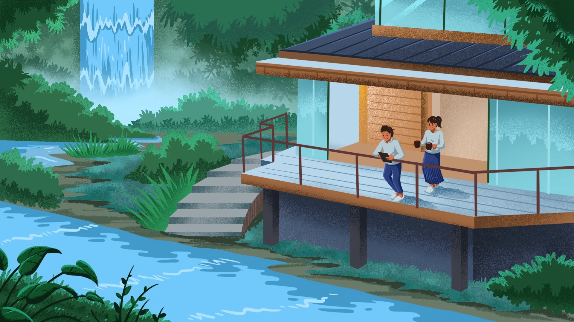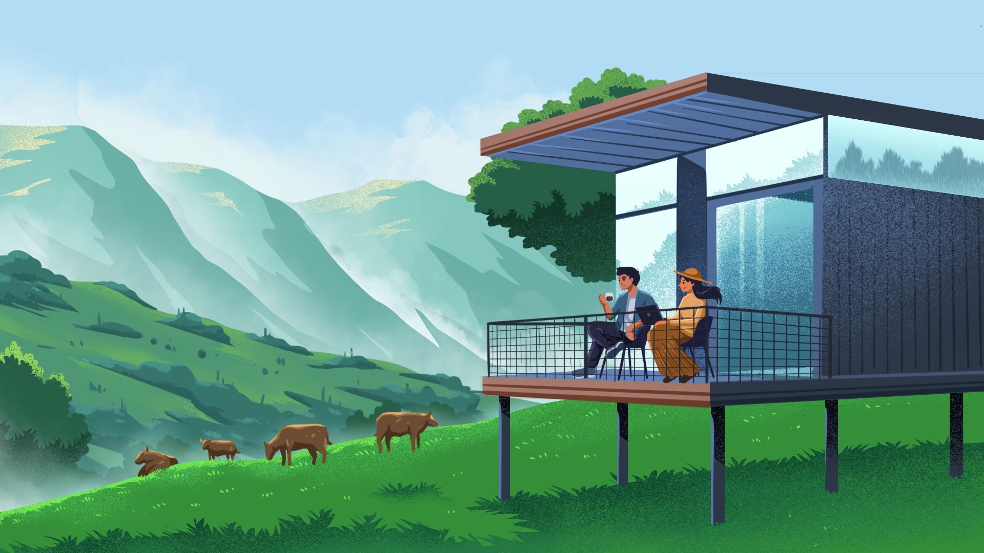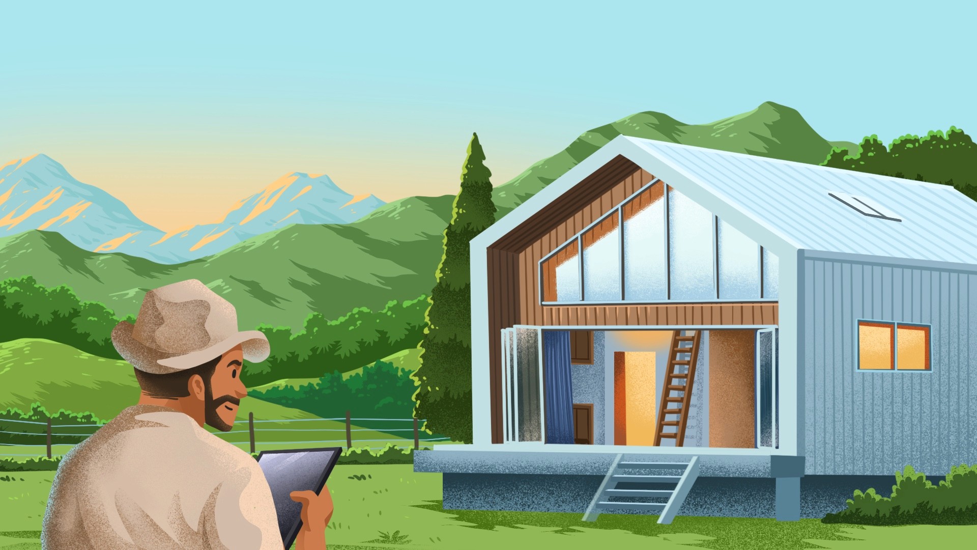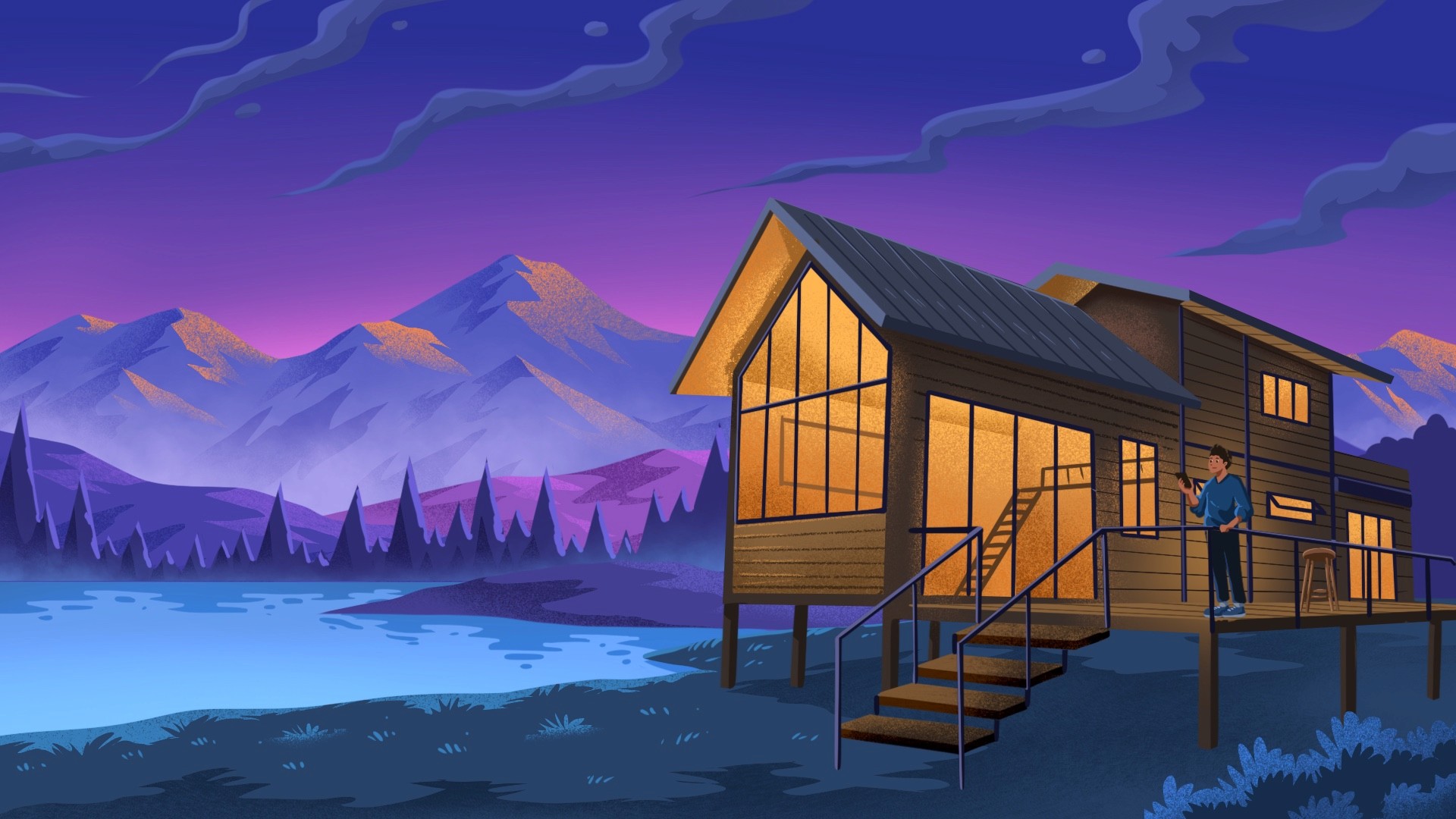 Cabin series is a landscape illustration project for Obierisk, a rental property insurance company. This illustration is used for newsletter header for their customer. All of character in the illustration is register their property in Obierisk